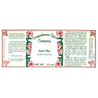 "Fowl Play" will harmonize with your chicken, turkey, stuffing, gravy, etc.