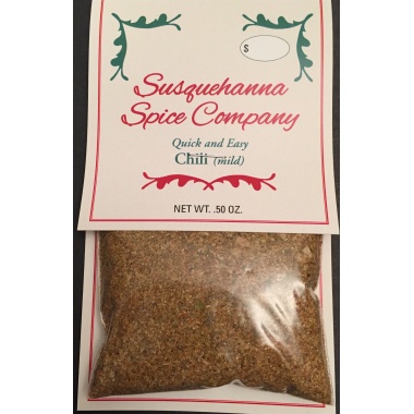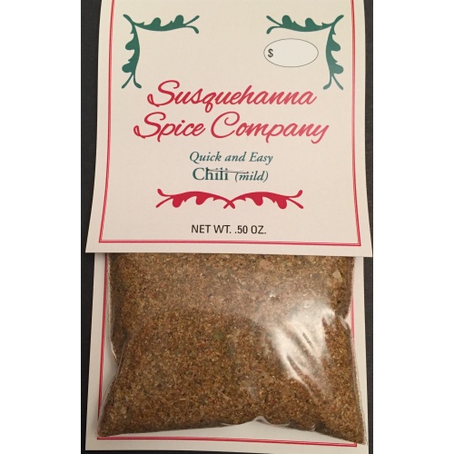 You have discovered Susquehanna Spice Company's seasoning for Quick & Easy Chili mix. It is easy to fix and ready in minutes. This is a classic chili that allows you to adjust the "heat level" as desired. Make a complete meal that is inexpensive and a family favorite.